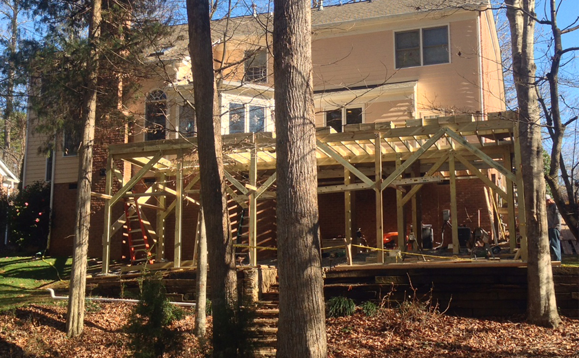 Adding a screen porch adds another room to your home. It can be a great entertaining area as well as a relaxing retreat. Our client wanted a space that was both. With a wet bar, fireplace, cozy chairs and room for a picnic table, this space fit the bill. Next to the screened porch is an extended deck with a hot tub. And, it all overlooks the wooded backyard making it feel like a getaway!